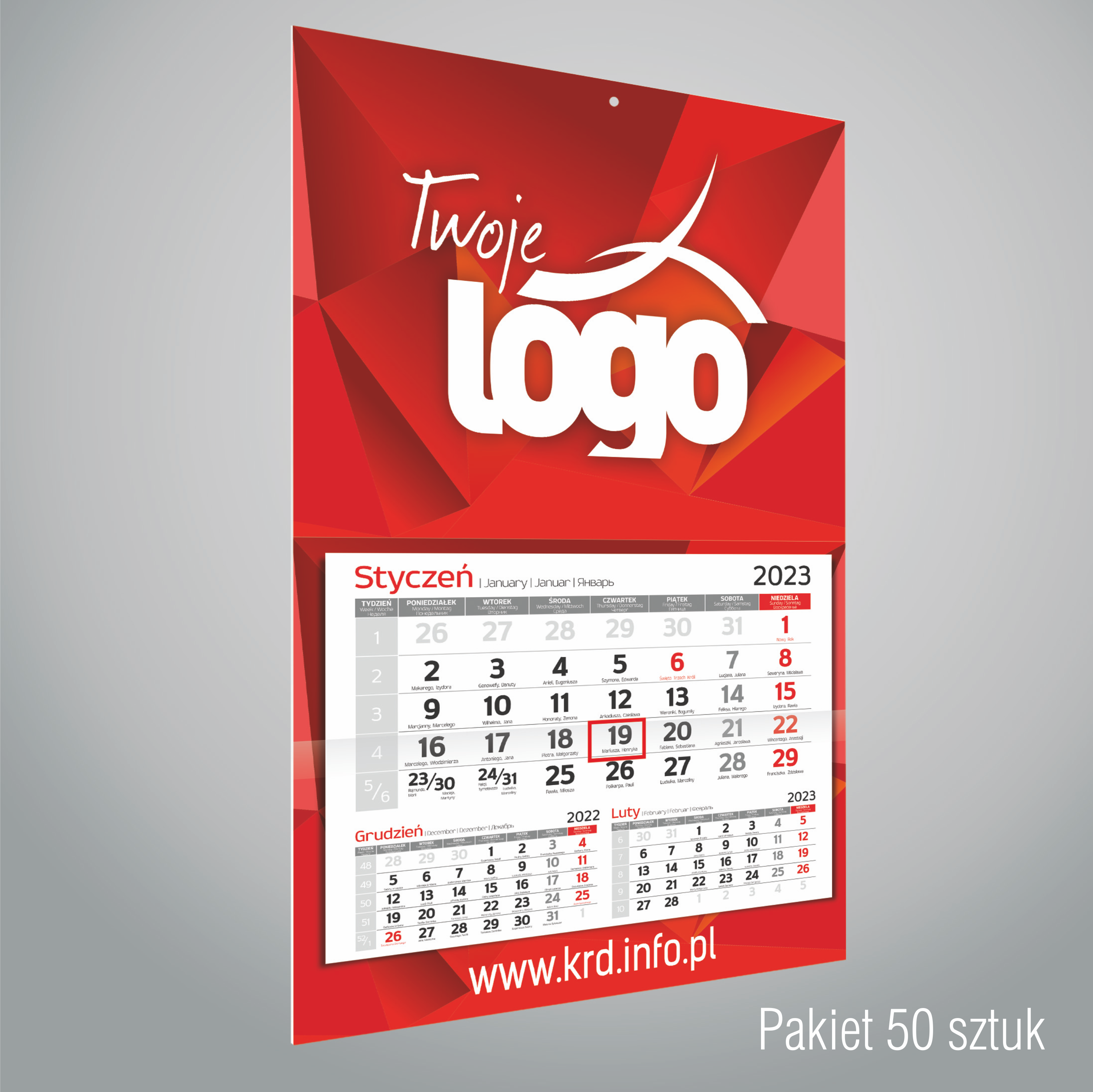 W paczce znajduje się 50 sztuk kalendarzy w tej samej szacie graficznej.