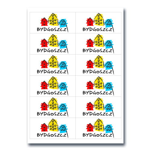 Druk naklejek/etykiet 500 arkuszy wyciętych w kształcie kwadratu lub prostokąta. Naklejki drukowane są na papierze samoprzylepnym.