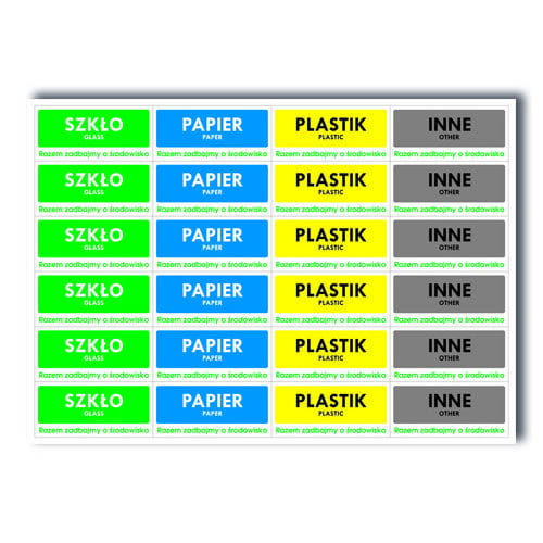 - 96 szt. naklejek prostokątnych o wymiarach 5 cm x 2,5 cm