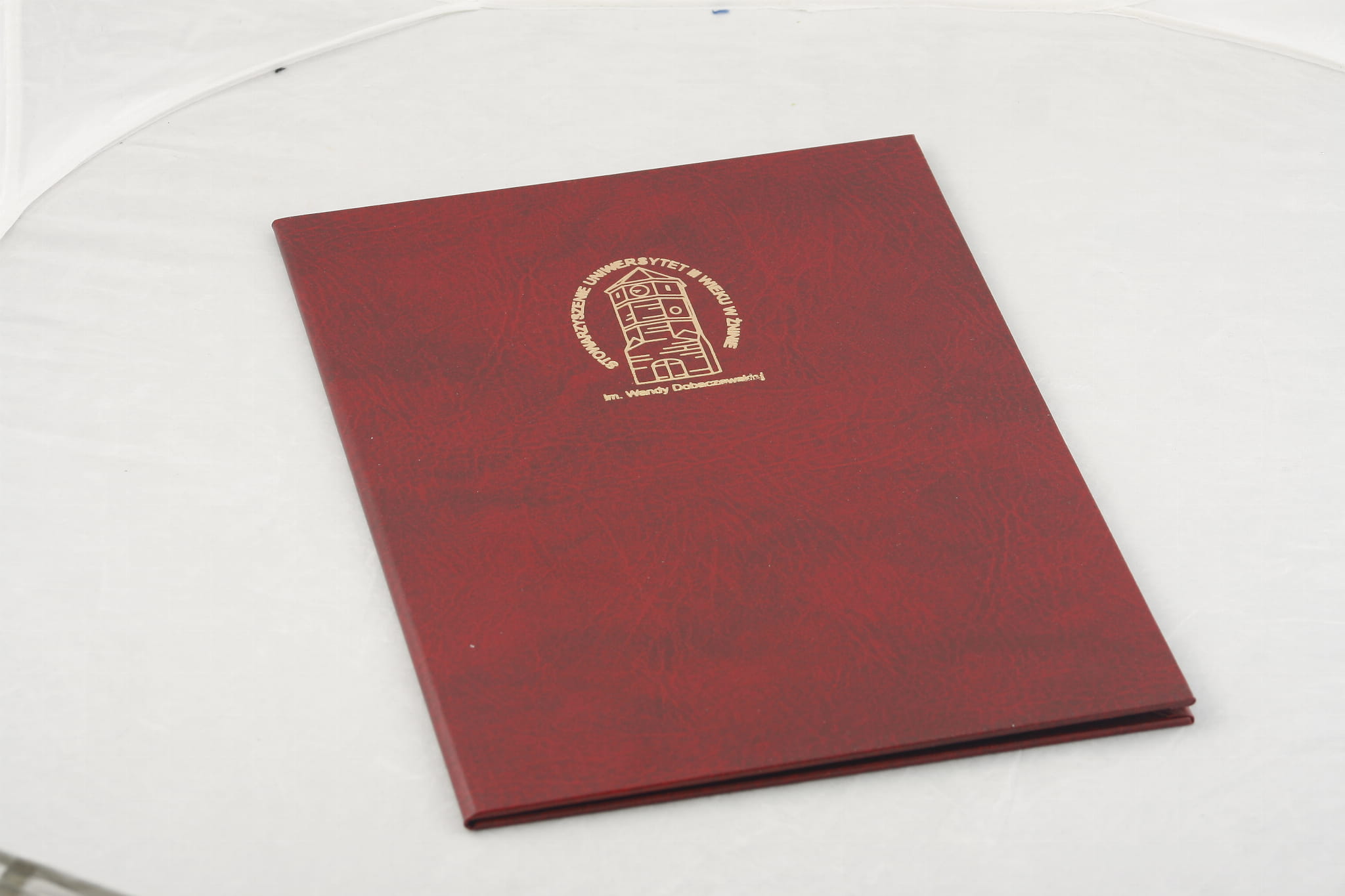 Okładka na dyplom z indywidualnym nadrukiem dostępna w 3 kolorach: bordowa, ciemno zielona i granatowa.